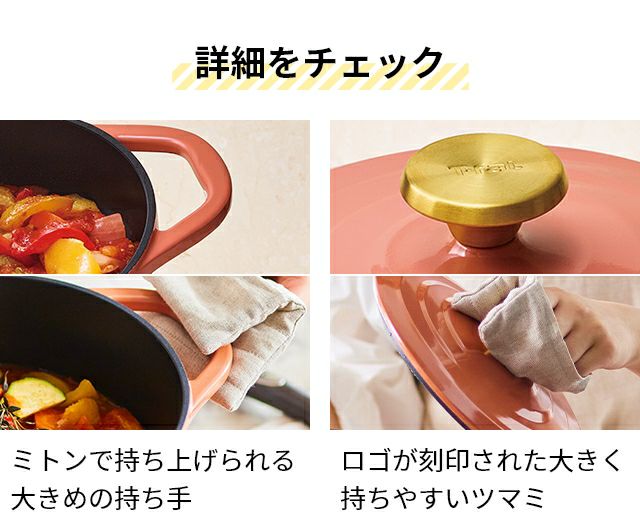 他の画像を見る 「T-FAL キャストライン エアココット」は、鋳物でありながら驚きの軽さを実現。日常的に気軽に使えます。 ティファール 【選べる豪華特典】 両手鍋 キャストライン エアココット 20cm E26844 E26744 鋳物鍋 キャセロール 20cm 深型 軽い 焦げ付かない くっつかない かわいい おしゃれ ih対応 ガス火 ブランド 食洗機対応 使いやすい 無水調理 T-FAL 当店特別価格 ¥ 7,200 税込 詳細を見る お気に入りに登録する