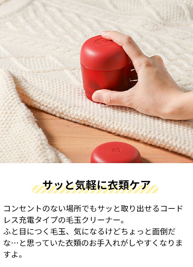 他の画像を見る コンセントのない場所でもサッと取り出せるコードレス充電式。 ふと目につく毛玉、気になるけどちょっと面倒だなと思っていた衣類のお手入れがしやすくなりますよ。 プラスマイナスゼロ 毛玉クリーナー XRL-H010 毛玉取り器 毛玉とり けだまとり ケダマトリ 毛玉カット 毛玉取り機 小さいサイズ コンパクト ニット 電動 布ソファー USB充電式 コードレス おすすめ おしゃれ 強力 6枚刃 ±0 Lint Remover 当店特別価格 ¥ 3,300 税込 詳細を見る お気に入りに登録する