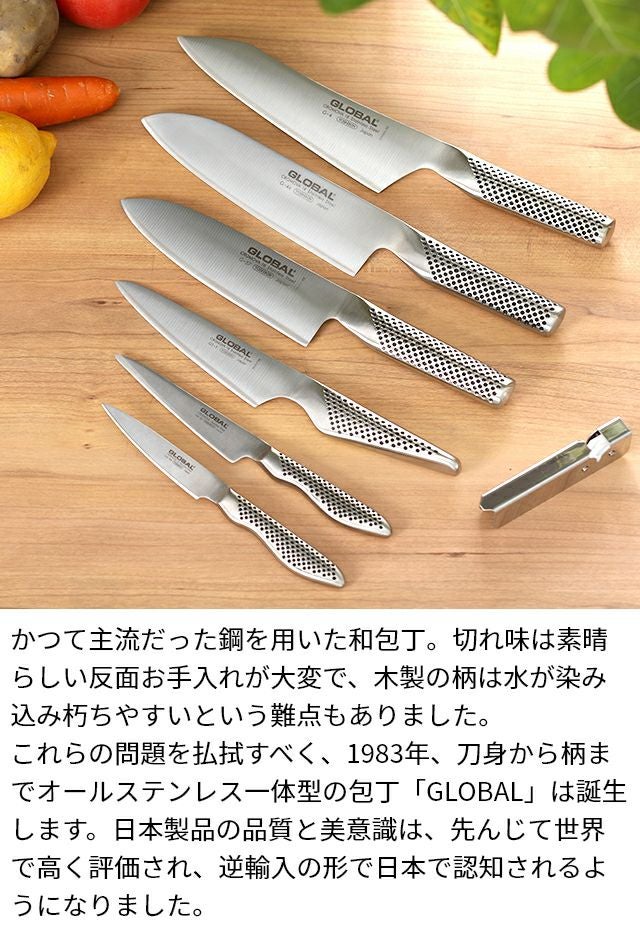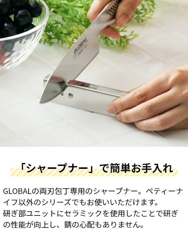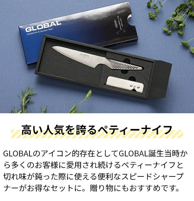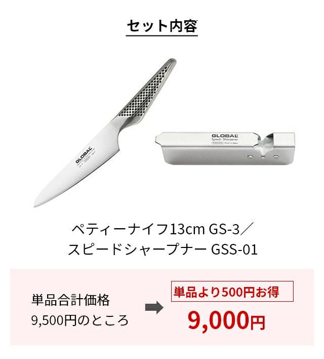他の画像を見る GLOBALのアイコン的存在として誕生当時から多くのお客様に愛用され続けるペティーナイフと切れ味が鈍った際に使える便利なスピードシャープナーがお得なセットに。 【豪華特典付き】 ペティーナイフ2点セット【GS-3ペティーナイフ13cm &GSS-01スピードシャープナー】【GS-3/GSS-01】 当店特別価格 ¥ 9,900 税込 詳細を見る お気に入りに登録する