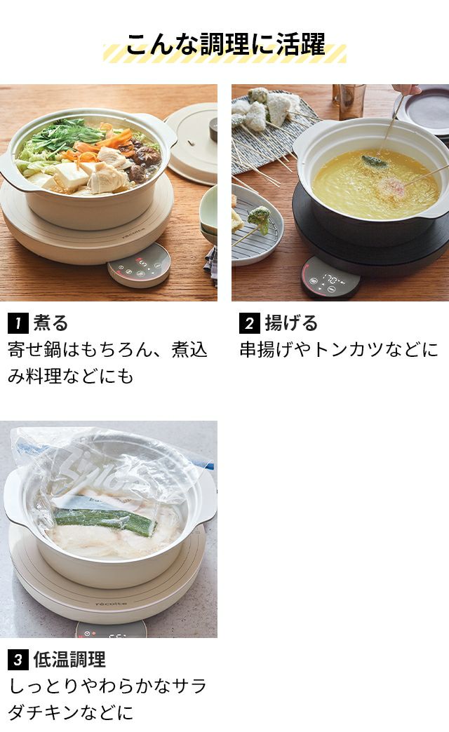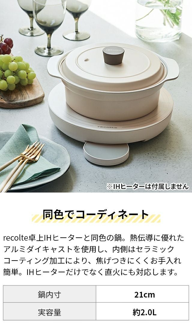 他の画像を見る 「recolte 卓上IHクッキンググリドル」の「卓上IHヒーター」と同色の「recolte IH対応鍋」。みんなで熱々の料理を囲めば食事がさらに美味しく! 【専用鍋】レコルト 両手鍋 卓上IH対応鍋 RIH-1PT おしゃれ ih対応 直火 深型 お手入れ簡単 卓上 20cm 揚げ物 おすすめ 軽量 小さめ ご飯 料理 鍋料理 低温調理 セラミックコーティング 食卓 アルミ recolte Compatible Pot for IH Heater 当店特別価格 ¥ 3,960 税込 詳細を見る お気に入りに登録する