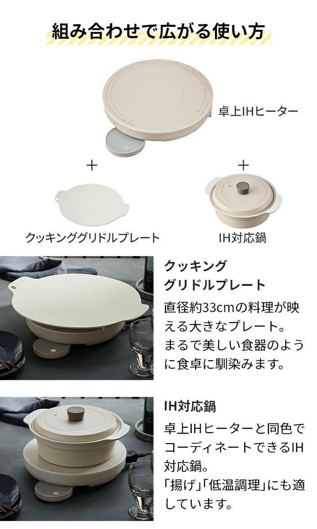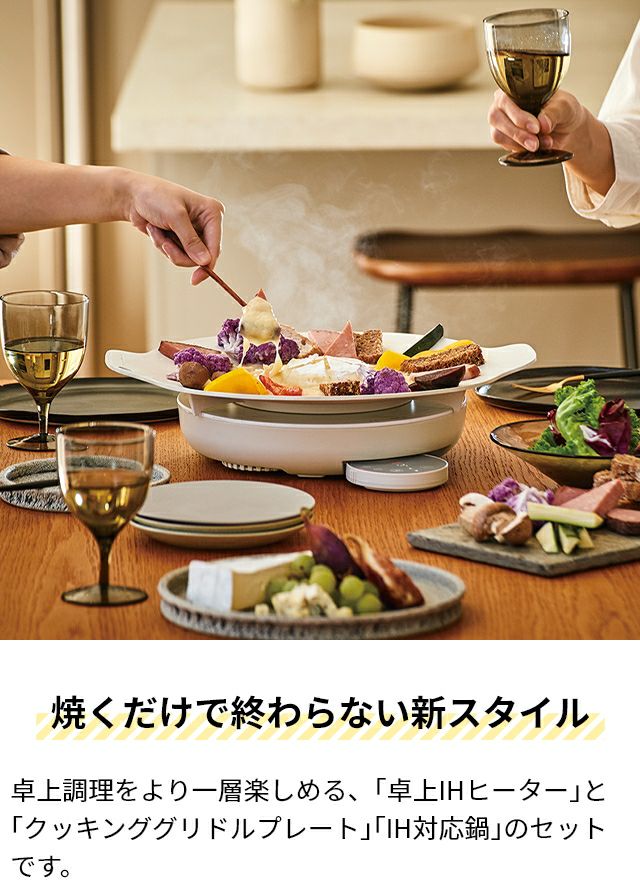 他の画像を見る 円形フォルム「卓上IHヒーター」と、調理できる大皿「クッキンググリドルプレート」と、IH対応の「鍋」のセット。みんなで熱々の料理を囲めば食事がさらに美味しく! レコルト 【選べる3大特典】 IHクッキングヒーター 卓上IHクッキンググリドル 鍋セット RIH-1 RIH-1PT ホットプレート IHコンロ 両手鍋 おしゃれ ih対応 大型 深型 丸型 お手入れ簡単 卓上 保温 1口 家族 小型 縦置き タイマー付き 深型 recolte IHCookingGriddle 当店特別価格 ¥ 23,760 税込 詳細を見る お気に入りに登録する