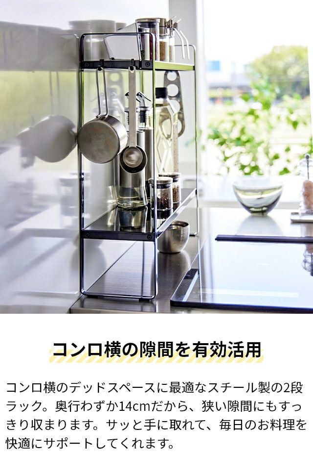 他の画像を見る 奥行わずか14cmで、コンロ横に置けるスリムキッチンラック。調味料や鍋フタを一箇所に集結させます。高床式なので、調理中の油はねが気になりにくく、お手入れも楽ちん。 山崎実業 下が拭けるコンロ横ラック タワー 2段 1991 1992 収納ラック キッチンラック 調味料ラック 棚 スチール 隙間収納 おしゃれ キッチン収納 スリム 組み立て式 フック 背板なし 小物 賃貸 tower キッチン収納 yamazaki タワーシリーズ 当店特別価格 ¥ 4,840 税込 詳細を見る お気に入りに登録する