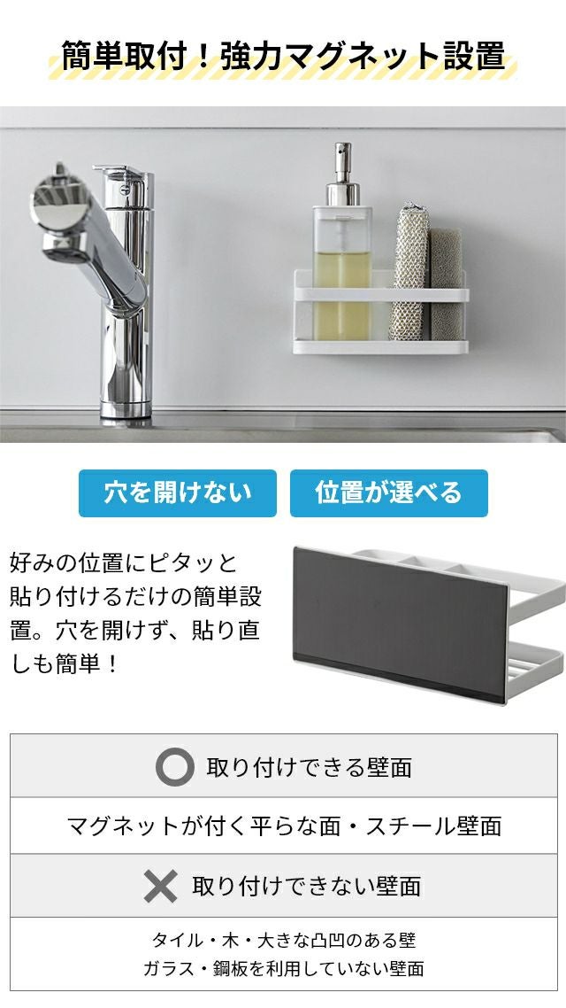 他の画像を見る 台所用洗剤ボトルとスポンジを壁面に一括収納。床から浮かせて、衛生的。収納部は3分割されており、スポンジは立てて省スペース。磁石式で貼付けるだけの簡単設置です。 山崎実業 スポンジラック マグネットスポンジ&ボトルラック タワー 3337 3338 スポンジホルダー スポンジ置き ディスペンサーホルダー ボトルスタンド 洗剤ラック マグネット コンパクト おしゃれ tower 浮かせる収納 yamazaki タワーシリーズ 当店特別価格 ¥ 2,420 税込 詳細を見る お気に入りに登録する