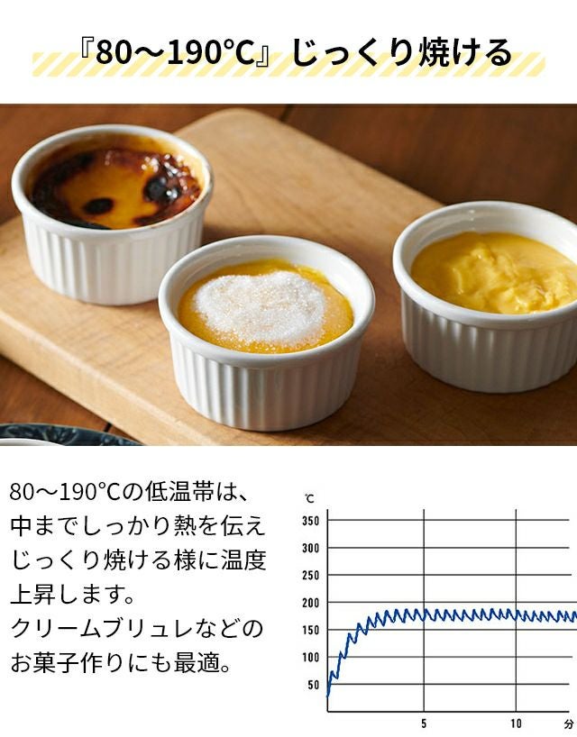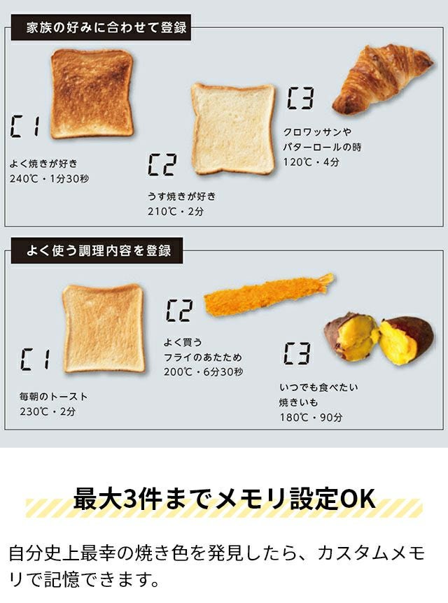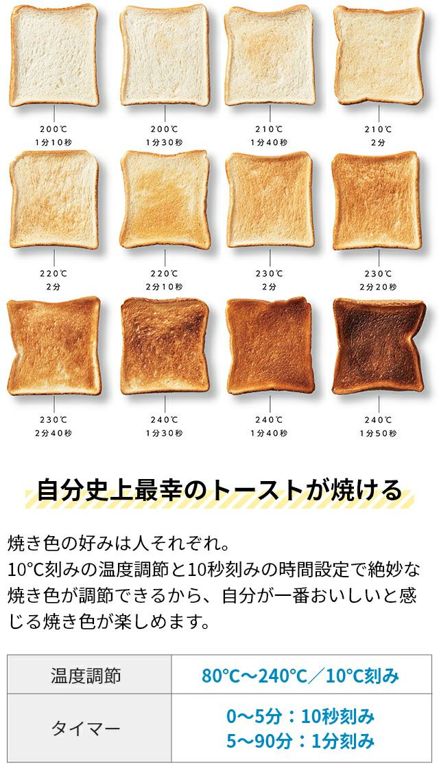 他の画像を見る 焼き色の好みは人それぞれ。10℃刻みの温度調節と10秒刻みの時間設定で絶妙な焼き色が調節できるから、自分が一番おいしいと感じる焼き色が楽しめます。 ビタントニオ 【選べる豪華特典】 オーブントースター VOT-100 コンパクト 調理 一人暮らし 両面焼き 網 レシピ 受け皿 2枚 クッキーが焼ける パン焼き 美味しく焼ける 幅30cm以上 掃除しやすい おすすめ パンくず 温度調節 ワット 多機能 小さい Vitantonio 当店特別価格 ¥ 22,000 税込 詳細を見る お気に入りに登録する
