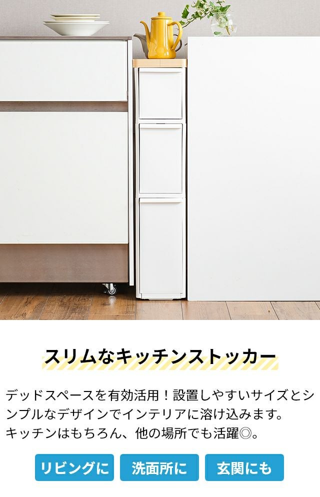 他の画像を見る 耐熱150℃の天板つきストッカー!キッチンに置いて収納に活躍しつつ、鍋などの一時置き調理台としても使える優れ物です。普段は見えにくいキャスターつきで移動も楽。 like-it キッチン ストッカー 耐熱木天板ストッカー スリム TS-111LWT 収納ラック 引き出し コンパクト 隙間 隙間収納 耐熱 おしゃれ 木目調 シンプル 白 ホワイト キャスター 洗面所 バスルーム 玄関 リビング 幅19 日本製 ライクイット 当店特別価格 ¥ 11,440 税込 詳細を見る お気に入りに登録する