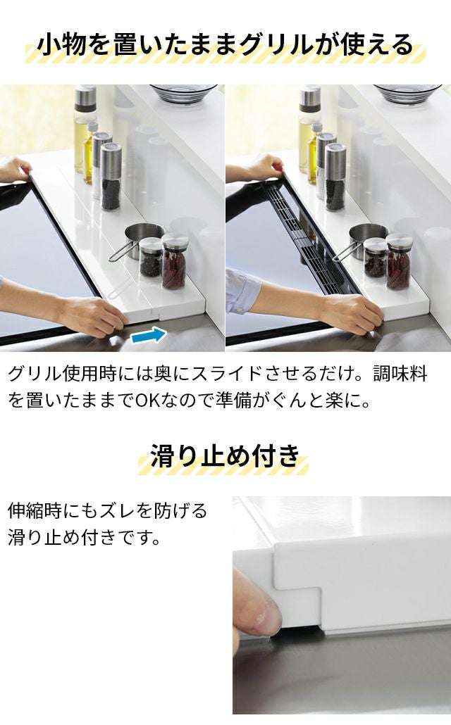 他の画像を見る キッチングリルの排気口に入るゴミや油はねを防止。奥行き伸縮でコンロ奥から壁まで、隙間なくガードできます。薄型フラットタイプで、調味料やフライパンの一時置きも◎ 山崎実業 奥行伸縮排気口カバー タワー 60cmコンロ用 4562 4563 グリルカバー コンロ奥カバー コンロカバー 調味料ラック コンロ奥ラック IH対応 キッチン フラット 60cm コンロ ihクッキングヒーター 棚付き tower yamazaki タワーシリーズ 当店特別価格 ¥ 3,300 税込 詳細を見る お気に入りに登録する