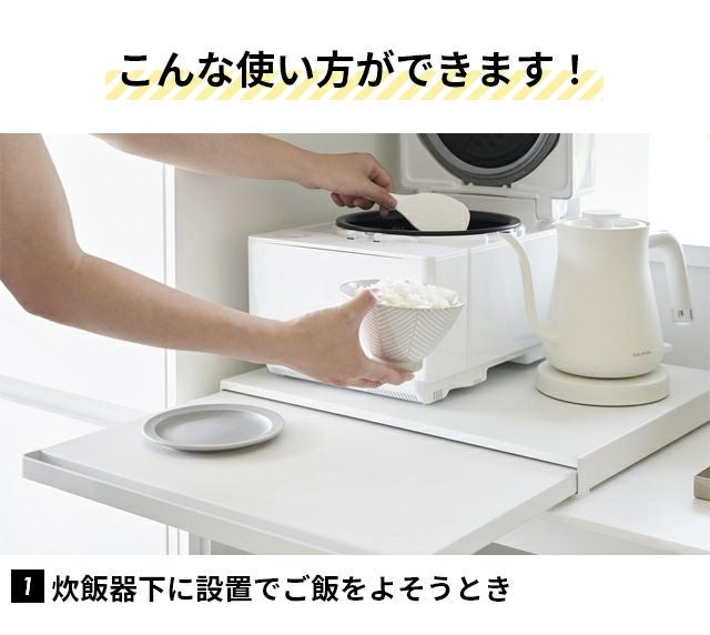 他の画像を見る お皿やお料理の一時置き場としたり、調理台として便利なスライドテーブル。炊飯器や電子レンジなどの下に置くだけ。サッと引き出せば、手軽に作業台が増やせて効率アップ! 山崎実業 キッチン家電下スライドテーブル タワー 2105 2106 スライドラック 家電ラック キッチンラック 後付け スリム レンジ 炊飯器 下 キッチン 薄型 おしゃれ 家電 簡単 省スペース 作業台 スチール tower yamazaki タワーシリーズ 当店特別価格 ¥ 6,820 税込 詳細を見る お気に入りに登録する