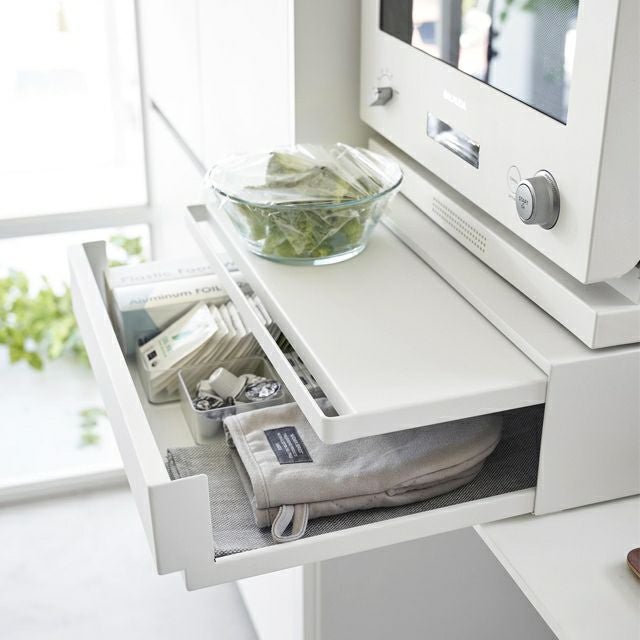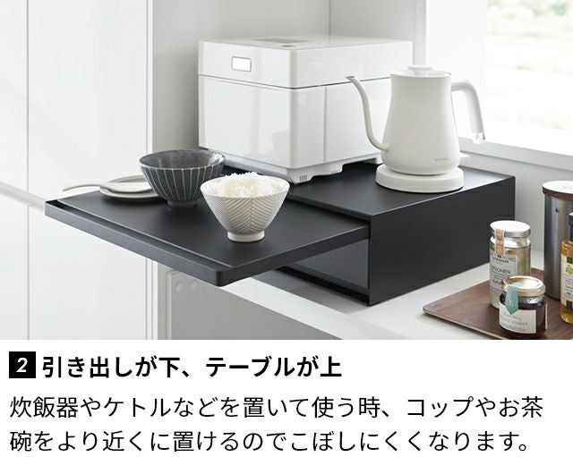 他の画像を見る お皿やお料理の一時置き場としたり、調理台として便利な、引き出し収納付きスライドテーブル。炊飯器や電子レンジ下に置いてサッと引き出せば、手軽に作業台が増やせます! 山崎実業 ツーウェイ キッチン家電下引き出し&スライドテーブル タワー 2007 2008 スライドラック ラック 後付け スリム レンジ 炊飯器 キッチン 引き出し おしゃれ 省スペース テーブル 電子レンジ カウンター 収納 整理 tower yamazaki タワーシリーズ 当店特別価格 ¥ 12,650 税込 詳細を見る お気に入りに登録する
