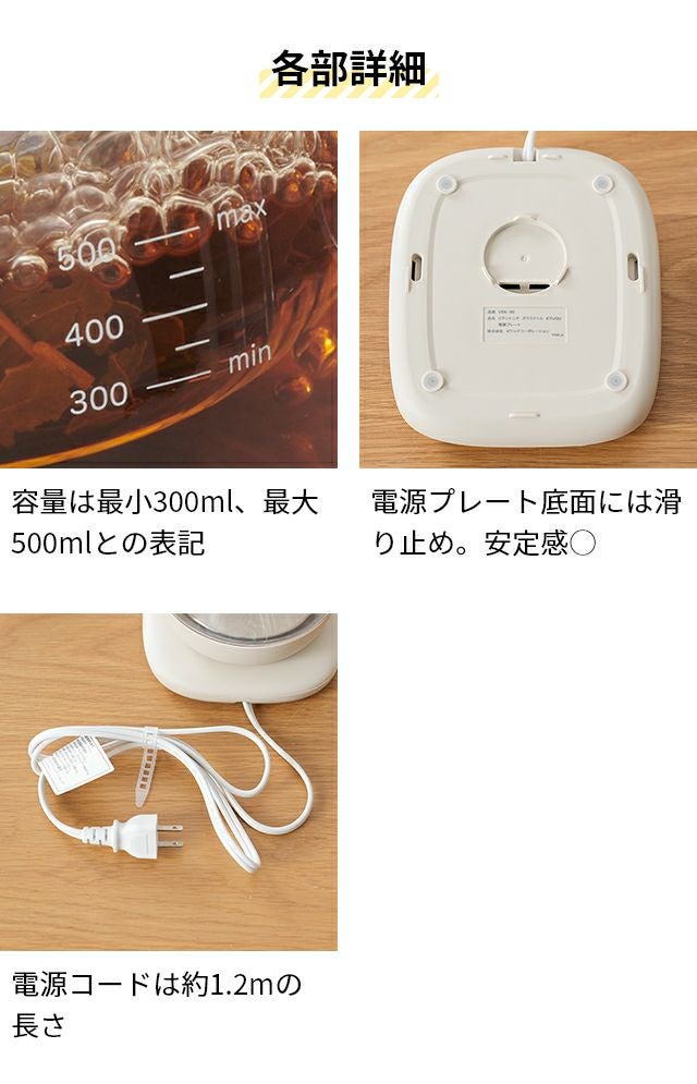 他の画像を見る 電気ケトル/急須/ティーポット/ケトル/ポット/電気ポット/湯沸かし/煮出し/おしゃれ/かわいい/ガラス/耐熱ガラス/お茶/緑茶/紅茶/中国茶/茶こし付き/0.5L/500ml/電気/自動/洗える/ギフト ビタントニオ 【選べる豪華特典】 電気ケトル ガラスケトル KYUSU VEK-30 急須 ティーポット ケトル ポット 電気ポット 湯沸かし 煮出し おしゃれ かわいい ガラス 耐熱ガラス お茶 緑茶 紅茶 中国茶 茶こし付き 0.5L 500ml 電気 自動 洗える Vitantonio GLASS KETTLE 当店特別価格 ¥ 7,920 税込 詳細を見る お気に入りに登録する