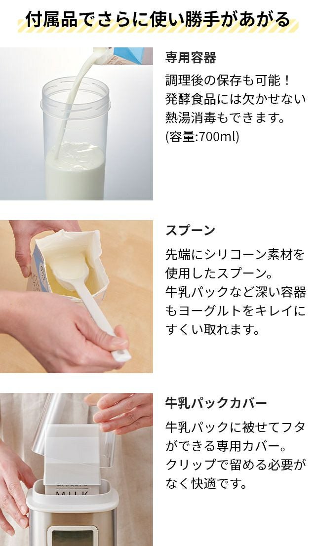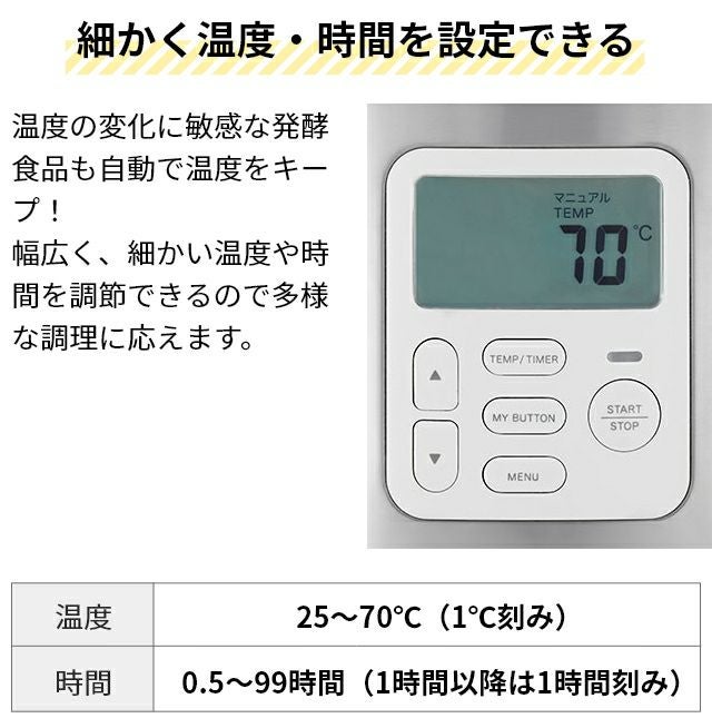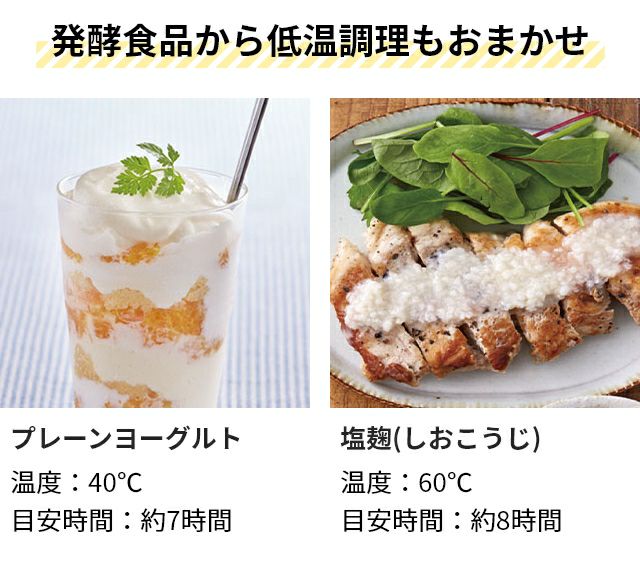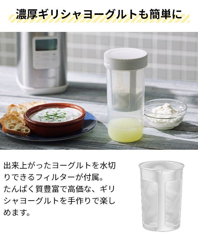 他の画像を見る ヨーグルトメーカー/低温調理器/ヨーグルト/牛乳パック/鶏ハム/水切り/甘酒/温泉卵/容器/レシピ/ギリシャ/ローストビーフ/塩麹/飲むヨーグルト/発酵食品/おすすめ/ギフト/プレゼント ビタントニオ 【選べる豪華特典】 ヨーグルトメーカー VYG-60-W 水切りヨーグルト ギリシャヨーグルト 低温調理 甘酒 温泉卵 容器 レシピ ギリシャ ローストビーフ 塩麹 飲むヨーグルト 発酵食品 おすすめ Vitantonio YOGURT MAKER 当店特別価格 ¥ 7,920 税込 詳細を見る お気に入りに登録する