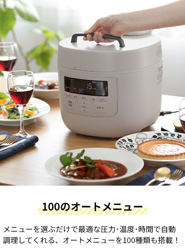 他の画像を見る 電気圧力鍋/圧力鍋/炊飯器/5l/電気/5合/ごはん/6人用/炊き込み/タイマー機能付/糖質カット/無水調理/蒸し料理/発酵/炊飯/煮物/煮込み料理/肉じゃが/保温/予約タイマー/時短/簡単/おしゃれ シロカ 【選べる豪華特典】 電気圧力鍋 電気圧力鍋 おうちシェフ PRO L SP-5D152 圧力鍋 炊飯器 5l 電気 5合 ごはん 6人用 炊き込み タイマー機能付 糖質カット 無水調理 蒸し料理 発酵 炊飯 煮物 煮込み料理 肉じゃが 保温 予約タイマー 時短 簡単 おしゃれ siroca 当店特別価格 ¥ 27,800 税込 詳細を見る お気に入りに登録する