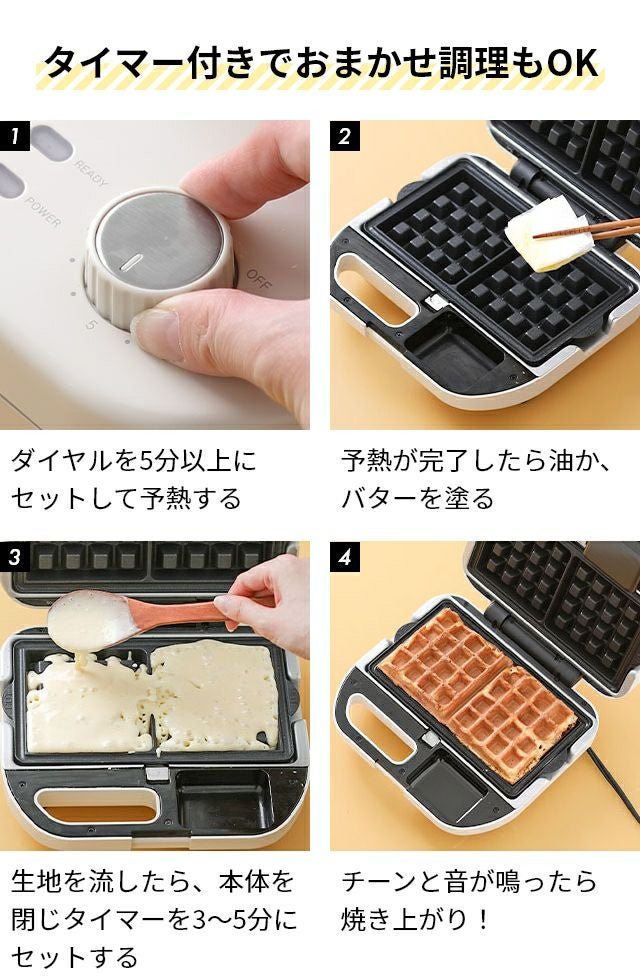 他の画像を見る 電気式のワッフルメーカー。プレートは着脱式でホットサンドやトーストが焼けるマルチサンドプレートが付属。 便利なタイマー付きで焼き上がりを教えてくれるのも嬉しい! ビタントニオ 【選べる豪華特典】 ホットサンドメーカー ワッフル&ホットサンドベーカー VWH-600 ワッフルメーカー レシピ 電気 ホットサンド かわいい おすすめ 耳まで 人気 1枚 洗える コンパクト 溝が深い おしゃれ Vitantonio waffle & hotsandwich baker 当店特別価格 ¥ 9,900 税込 詳細を見る お気に入りに登録する