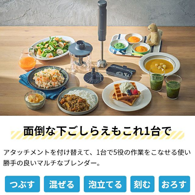 他の画像を見る 離乳食や毎日の下ごしらえに。1台5役(つぶす・混ぜる・刻む・泡立てる・おろす)の多機能ブレンダー。熱湯消毒対応でお手入れ簡単。出産祝いにも最適。 ビタントニオ 【選べる豪華特典】 ハンドブレンダー VHB-30 ハンディブレンダー ハンドミキサー ハンディーブレンダー おろし 静音 セット コンパクト 離乳食 小型 洗いやすい カップ 生クリーム 最強 泡だて器 氷 砕ける Vitantonio HAND BLENDER 当店特別価格 ¥ 8,690 税込 詳細を見る お気に入りに登録する