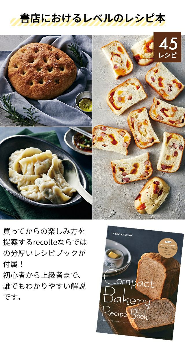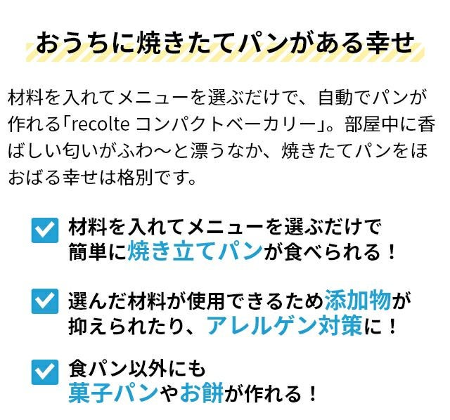 他の画像を見る 初心者でも手軽に焼きたてのパンが自動で作れる「recolte コンパクトベーカリー」。食パンだけでなく全粒粉パンや早焼き、ピザや麺類の生地、おもちも作れる全12モード搭載。 レコルト ホームベーカリー 【選べる2大特典】 全自動ホームベーカリー 1斤 パン焼き機 食パン レシピブック付 餅つき ミックス粉 米粉 柔らかい ピザ生地 惣菜パン 人気 グルテンフリー パン焼き器 手作り パン [ recolte コンパクトベーカリー RBK-1 ] 当店特別価格 ¥ 19,800 税込 詳細を見る お気に入りに登録する