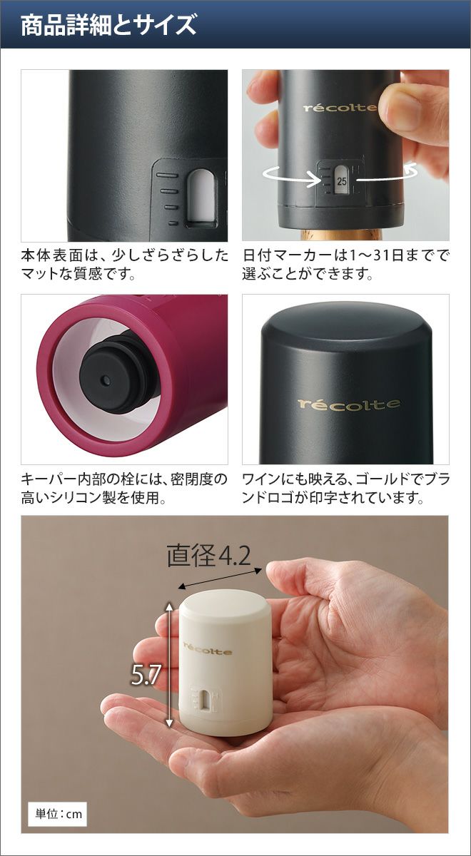 他の画像を見る ワインキーパー/ワインストッパー/シャンパンストッパー/ワイン/ボジョレーヌーボー/おすすめ/おしゃれ/シャンパン/スパークリングワイン/酸化防止/かわいい/人気/ワイングッズ/保存/鮮度/日付/デザイン/recolte レコルト イージーワインキーパー 当店特別価格 ¥ 990 税込 詳細を見る お気に入りに登録する