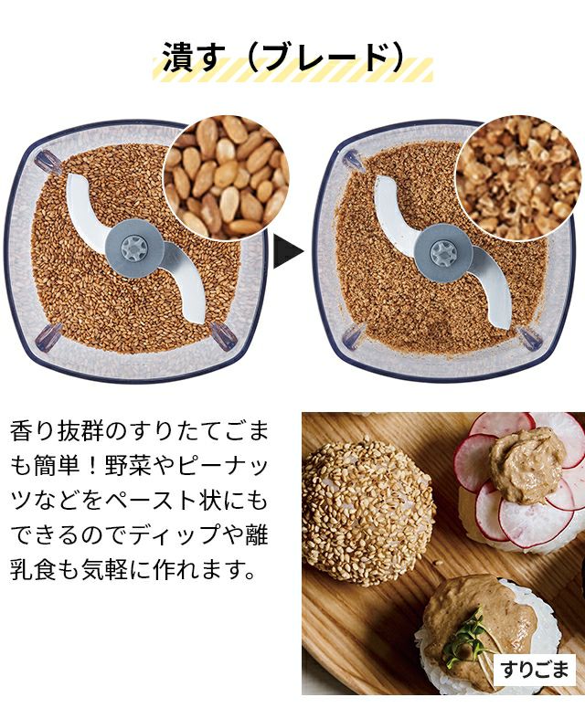 他の画像を見る 手軽に、瞬時に【刻む・混ぜる・練る・潰す・砕く・おろす・泡立てる】が出来てしまうフードプロセッサー。28種の個性的な料理が掲載されたレシピ本も付属します。 【選べる2大特典】 フードプロセッサー ブレンダー ミキサー アイスクラッシャー 大根おろし 離乳食 氷 砕く ホイップ 生クリーム 泡立て ひき肉 おしゃれ 500ml 7役 家電 キッチン [recolte レコルト Capsule Cutter Bonne カプセルカッター ボンヌ RCP-3] 当店特別価格 ¥ 7,150 税込 詳細を見る お気に入りに登録する