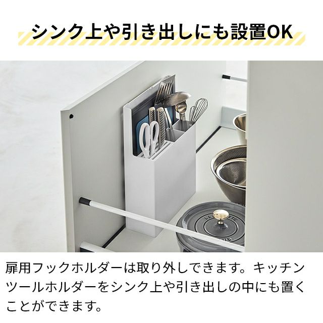 他の画像を見る キッチンツールを一括収納しシンク扉に掛けるだけ。扉用フックホルダーは取り外しでき、3段階の間隔で調節できるので手に取りやすい高さに設置可能です。 山崎実業 キッチンツールスタンド シンク扉オールインワンキッチンツールホルダー タワー 4512 4513 キッチンツールスタンド まな板スタンド カトラリースタンド 浮かせる 引き出し シンプル 北欧 tower キッチン収納 yamazaki タワーシリーズ 当店特別価格 ¥ 3,520 税込 在庫切れ 詳細を見る お気に入りに登録する