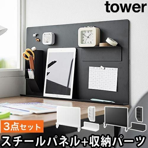 tower(タワー)デスク横トレー付きスチールパネル+マグネット棚+マグネットペンスタンド セット