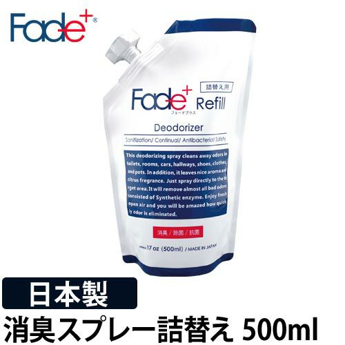 他の画像を見る 消臭スプレー/消臭剤/除菌スプレー/フェードプラス/Fade+/詰替え/詰め替え/つめかえ/パック/500ml/大容量/お得/除菌/抗菌/無香/無色/無臭/ノンアルコール/99%/衣類/部屋用/トイレ/靴 フェードプラス 消臭スプレー詰替え用 500ml 当店特別価格 ¥ 3,300 税込 在庫切れ 詳細を見る お気に入りに登録する