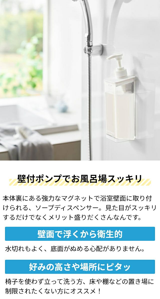 従来品よりも1プッシュがたっぷり出る!ロングセラー商品として沢山の人に愛されてきたディスペンサーがより使いやすくパワーアップ。 山崎実業 たっぷり洗剤が出るマグネットディスペンサー ミスト 1544 1545 1546 ソープディスペンサー シャンプーボトル ソープポンプ 詰め替えボトル 容器 液体 浮かせる 壁掛け 磁石 おしゃれ 袋のまま 詰め替えそのまま MIST yamazaki