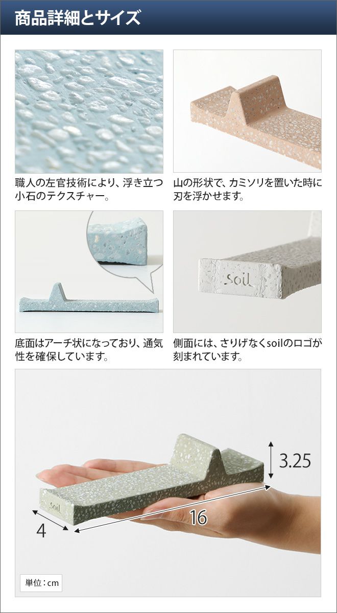 他の画像を見る 吸水性に優れた珪藻土で作られた「ソープディッシュ」。石鹸の水気をカラッと吸収し、菌の繁殖を防ぎます。 soil ソープディッシュ 当店特別価格 ¥ 2,200 税込 詳細を見る お気に入りに登録する