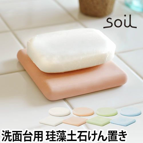 吸水性に優れた珪藻土で作られた「ソープディッシュ」。石鹸の水気をカラッと吸収し、菌の繁殖を防ぎます。
