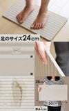 その秘密は、「珪藻土(けいそうど)」。 珪藻土は吸水性・調湿性に優れており、水をぐんぐん吸い込みすぐにカラッと乾燥します。 30分~1時間後にはうっすら足跡が残るくらいに。