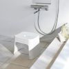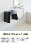 バスチェアにマグネットが内蔵されており、浴室内の壁にピタッと貼り付けて収納。壁にマグネットが直接付かないのでサビの心配もありません。