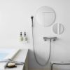 直径23cmのコンパクトミラーは、正円で傾きが気にならないため、細かい角度調整する必要がありません。浴室がスタイリッシュな印象になります。