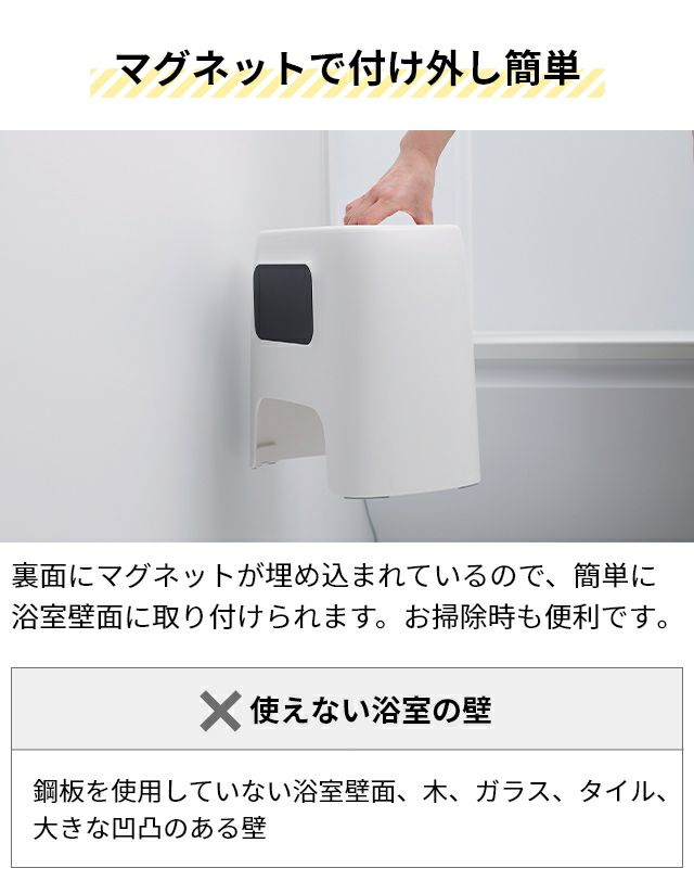 他の画像を見る 壁に浮かせて収納ができる「marnaマグネット風呂いす」。浮かせることで、床のスペースを取らず空間を広々と使えます!水切れも良く乾燥しやすいです。 マーナ マグネット風呂いす バスチェア 風呂イス マグネット 風呂椅子 浮かせる おすすめ おしゃれ 頑丈 壁掛け 滑り止めゴム 高さ 28cm コンパクト シンプル 洗いやすい 手入れしやすい 磁石 便利 お手入れ簡単 水切れが良い marna 当店特別価格 ¥ 4,400 税込 在庫切れ 詳細を見る お気に入りに登録する