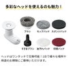 回転ヘッドは付け替えが可能。ブラシはお風呂の床などの硬い場所、モップパッドは窓やフローリングなど傷つけたくない場所、スポンジパッドはシンクの水垢のような頑固な汚れがある場所など、色んなシーンに対応できます。