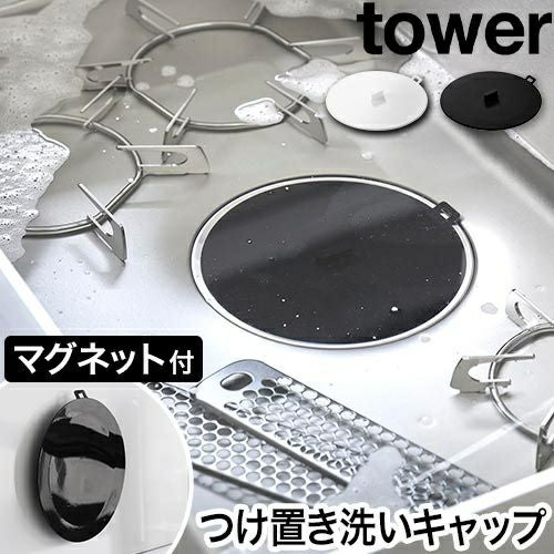 キッチンシンクの排水口にフタをするだけで、簡単につけ置き洗いができる「tower マグネット浸け置き洗いキャップ」。大きくて掃除しにくい排気パネルや五徳など、IHやガスコンロ周りの油汚れ落としに便利です。マグネット付きで、使わない時は壁にピタッと貼り付けるだけ。水切れも良く衛生面でも安心です。シンプルデザインはキッチン周りのインテリアにも良く馴染みます。