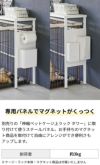「tower 伸縮ペットゲージ上ラック用 オプションパーツ」は別売りの「伸縮ペットケージ上ラック タワー」に取付けて使える専用のスチールパネル。マグネット商品が取り付けられて、自由にアレンジができます。ラック本体のサイドフレームに掛けるだけの簡単設置です。
