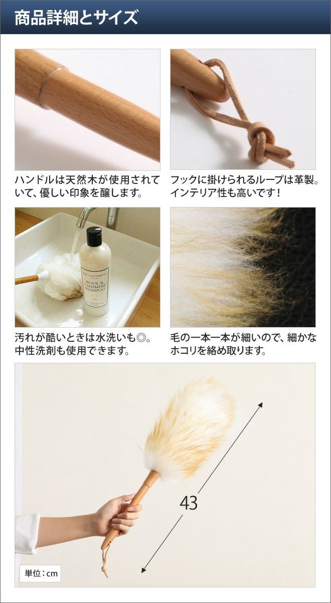 他の画像を見る 羊毛を使用したダスター。弾力性に優れたふわふわの羊毛で、ほこりをからめ取ります。 羊毛のホコリ取り ウールダスター LLサイズ 当店特別価格 ¥ 1,980 税込 詳細を見る お気に入りに登録する