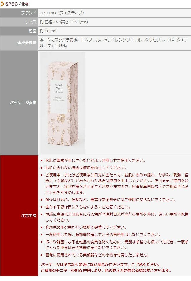 他の画像を見る 化粧水/フェイスミスト/フェイシャルミスト化粧水/FESTINO/フェスティノ/さっぱり/保湿/ローズ/ダマスクローズ/スキンケア/基礎化粧品/朝/夜 FESTINO フェイシャルミスト化粧水 当店特別価格 ¥ 1,100 税込 在庫切れ 詳細を見る お気に入りに登録する