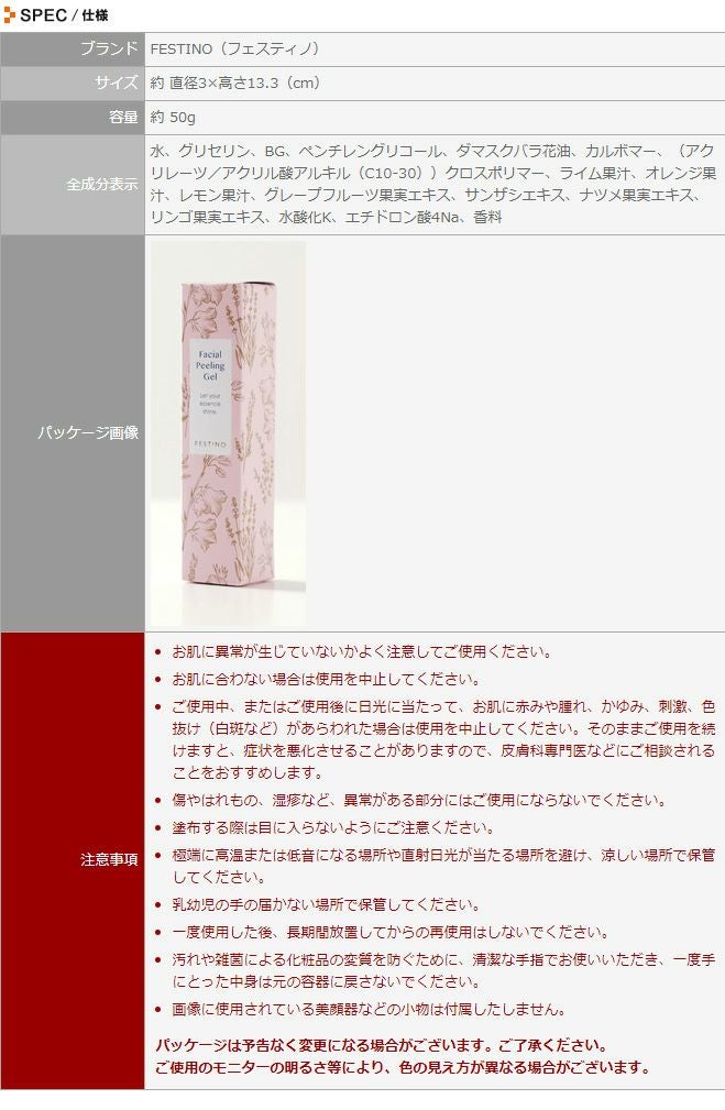 他の画像を見る 保湿ジェル/ジェルクリーム/フェイシャルピーリング保湿ジェル/FESTINO/フェスティノ/角質ケア/毛穴ケア/たるみ肌/保湿/ローズ/スキンケア/基礎化粧品/夜 FESTINO フェイシャルピーリング保湿ジェル 当店特別価格 ¥ 1,540 税込 在庫切れ 詳細を見る お気に入りに登録する