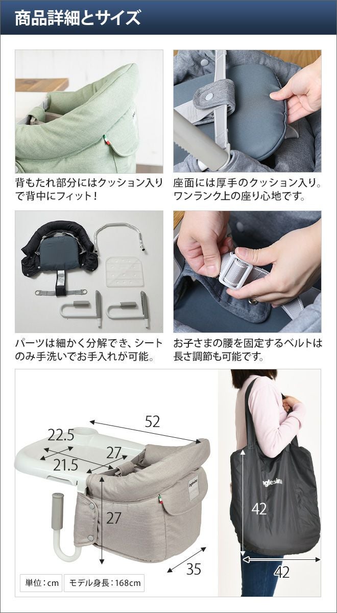 他の画像を見る 大人と同じ目線で食事♪使いやすい秘密がいっぱい詰まった、折りたためて洗えるヴィータ テーブルチェア。 Vita テーブルチェア 当店特別価格 ¥ 6,090 税込 在庫切れ 詳細を見る お気に入りに登録する