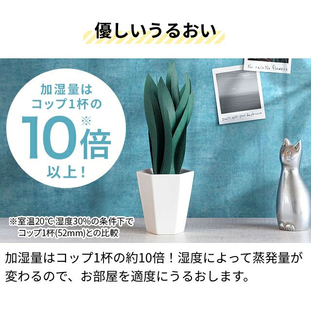 他の画像を見る 電源も電気代も一切必要のない、まるで観葉植物のようなエコ加湿器。お水さえあればどこでも使えます。音も光も出さない自然気化式だから、睡眠を妨げません。 ミクニ エコ 加湿器 ミスティプランツ サンスベリア ペーパー加湿器 卓上 デスク 小型 小さい お手入れ簡単 ペットボトル かわいい おしゃれ 電源不要 電気 使わない コードレス 部屋 寝室 リビング オフィス 持ち運び 気化式 ベッドサイド 日本製 当店特別価格 ¥ 2,280 税込 詳細を見る お気に入りに登録する