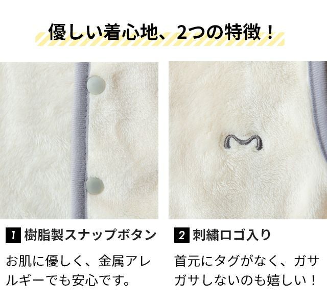他の画像を見る 動き回ったり寝返りをうつ子どもとってスリーパーは安眠に欠かせない存在。そんなスリーパーを極上の毛布素材で作りました。暖かい上に軽く、ふわふわで着心地もバツグン◎ モフア ベイビー スリーパー お布団はだけても安心のあったかスリーパー Mサイズ 80-100cm 着る毛布 1年保証 キッズ 毛布 新生児 ロンパース ベビー ベスト もこもこ ボタン 洗濯 赤ちゃん 幼児 前開き 寝返り 冬 秋 股ボタン 子供 冬用 mofua baby 当店特別価格 ¥ 1,990 税込 詳細を見る お気に入りに登録する