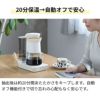抽出後は約20分間あたたかさをキープします。自動オフ機能付きで切り忘れの心配もなく安心です。