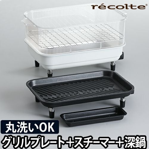 recolte ホットプレート用 プレート 丸洗い グリルプレート スチーマー 深鍋 鍋 焼肉