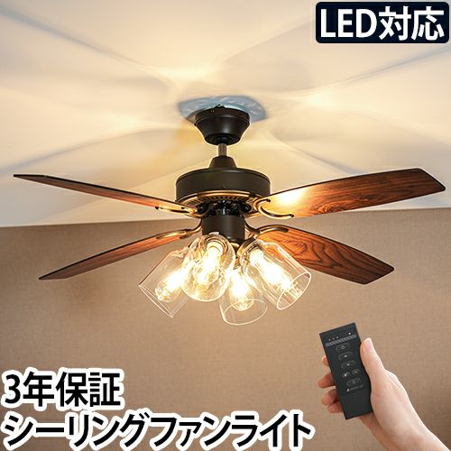シーリングファンライト シーリングライト 北欧 カフェ風 led リモコン付 オシャレ 電球色