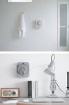 本体の裏面にはマグネットと壁掛け用のホールつきで、キッチンの冷蔵庫やトイレ、脱衣所などに設置できて便利。置いた状態でも使えるのでデスクファンとしても最適です。
