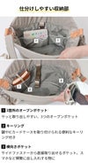 豊富な内ポケットと大きなマチでたっぷり収納できます。サイドファスナーを開ければ、抱っこしたまま荷物の取り出しが可能!