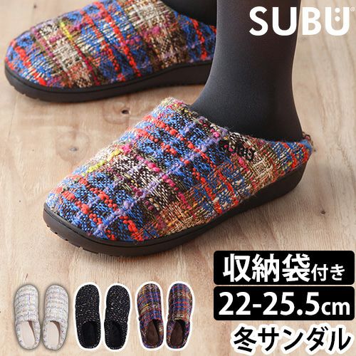 寒い時期、ふと出掛ける時に素足で履ける新感覚の秋冬サンダルSUBUから登場した「スブ ツイード」。履いた瞬間から温かいモコモコ感はそのまま、ツイード素材になってよりファッショナブルなデザインに。内側の起毛素材が足全体にフィットし、裸足でも温か。近所への買い物やオフィスでサッと履ける気軽さが魅力です。高いクッション性と滑り止めは歩きやすさも抜群。