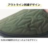寒い時期、素足でサッと履ける「スブ ナンネン アウトライン」は、新感覚の秋冬サンダル。ダウンジャケットのようなモコモコ素材と、内側の起毛素材が足全体にフィットし、裸足でも温か。表地は難燃加工が施され、火を使うキャンプシーンに最適!高いクッション性と滑り止めは歩きやすさも抜群。シンプルだけど他のサンダルとは一味違う、ファッショナブルなデザインです。