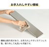 掃除がしやすく見た目にも美しいステンレス天板。棚板は取り外して水洗いが可能です。