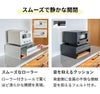 ローラー付きレールで驚くほど滑らかな開閉を実現。背面側に金属の不快な接触音を抑えるフェルト付きです。