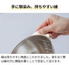深めのボウルなので、卵液などの液体もこぼさず混ぜられます。お弁当に欠かせない卵焼きも作りやすい!持ち手付きなので混ぜやすさも◎。