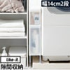 洗濯機の下の防水パンをまたいで設置ができる省スペースの収納ケースです。